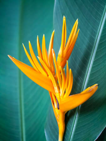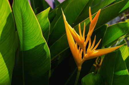 Bird of paradise flowers yellow with green leaves There are many in Asia.