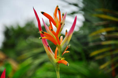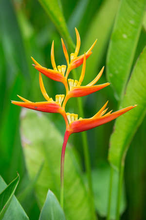 Beautiful caribbean Heliconia bihai flower, lobster claw