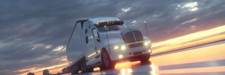 big truck moves on highway at sunrise