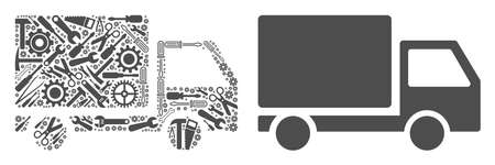 Delivery mosaic of workshop instruments. Vector delivery icon is composed of gearwheels, spanners and other mechanics objects. Concept of mechanic job.