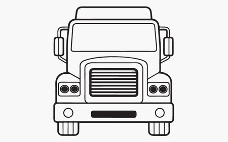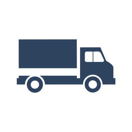 A simplified, black and white icon depicts a delivery truck. The graphic showcases a side view of a vehicle, emphasizing its shape and wheels against a white background. It features clean lines and a minimalist style. Suitable for various design projects and commercial applications requiring a transport or shipping symbol.