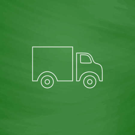 Truck Outline vector icon. Imitation draw with white chalk on green chalkboard. Flat Pictogram and School board background. Illustration symbol