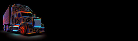 Black truck on black uniform background. Cargo and shipment concept. Generative AI.