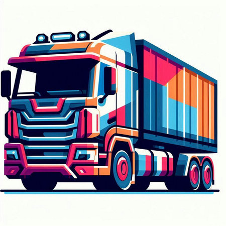 Painting of dump truck with yellow and blue paint job. Generative AI.