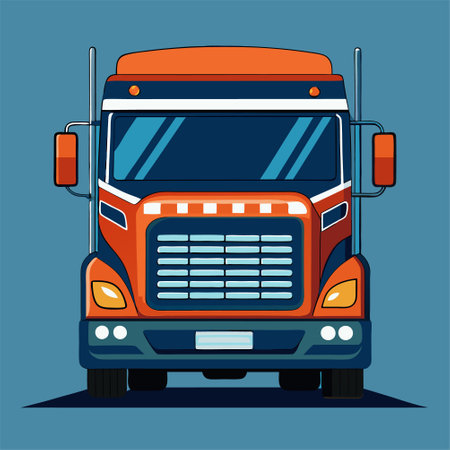 Cute Orange Truck Car from Front Side Flat Design Cartoon for Shirt, Poster, Gift Card, Cover, Logo, Sticker and Icon.