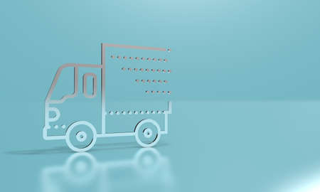 Truck outline icon on a light blue background. 3D illustration, 3D rendering.