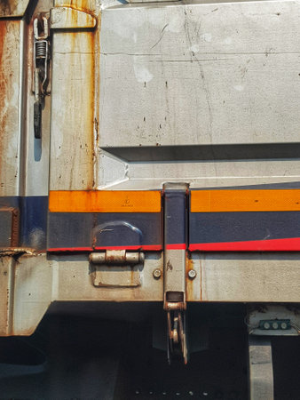 Close-Up of a Secure Truck Latch Mechanism, Macro shot of a metal truck latch mechanism, highlighting the details and textures of security in transportation.