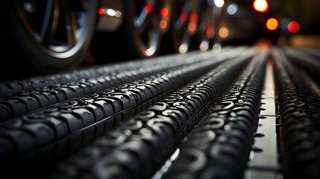 Embrace the tranquility of a trucking hub at sunset, featuring close-ups of truck wheels