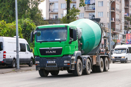 Batumi, Georgia - September 26, 2025: Concrete mixer lorry MAN TGS in the city street.