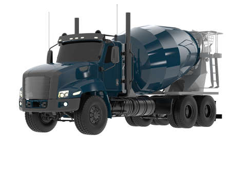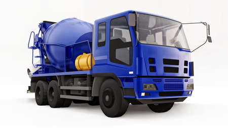 Blue concrete mixer truck white background. Three-dimensional illustration of construction equipment. 3d rendering