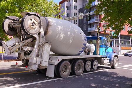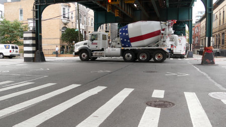 New York, United States - September 21, 2019: A concrete mixer truck in the streets of Manhattan.