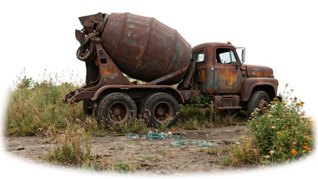 Construction machinery, concrete mixer. Commercial vehicles for work on the construction site. Vector illustration isolated on white background
