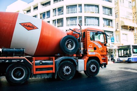 Tel Aviv Israel September 23, 2019 View of a truck driving through the streets of Tel Aviv in in the afternoon