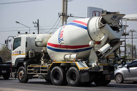 Chiangmai, Thailand - March 6 2020: Concrete truck of PMIX Concrete product company. Photo at road no.121 about 8 km from downtown Chiangmai, thailand.