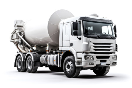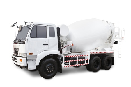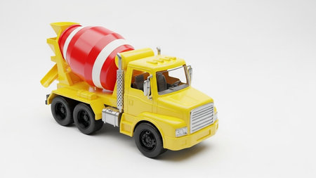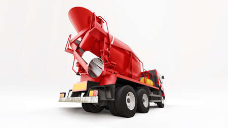 Red concrete mixer truck white background. Three-dimensional illustration of construction equipment. 3d rendering