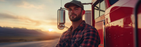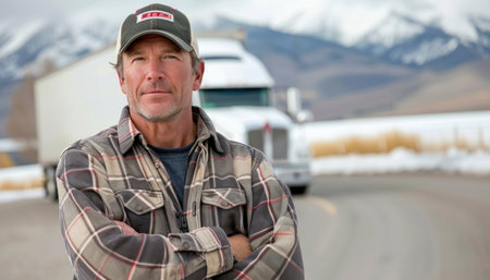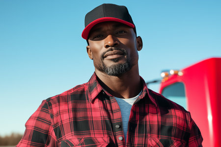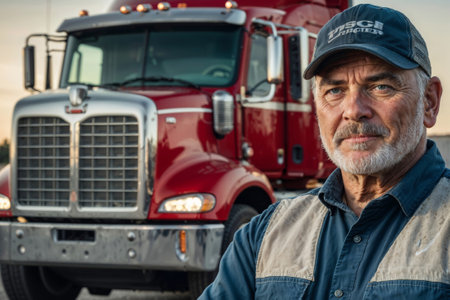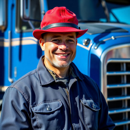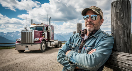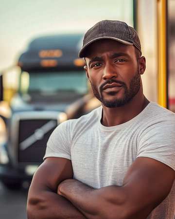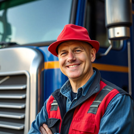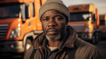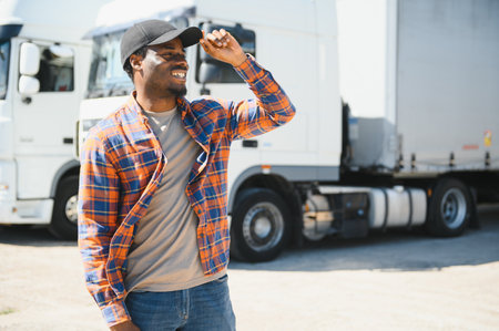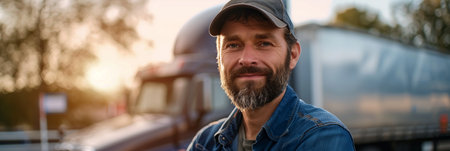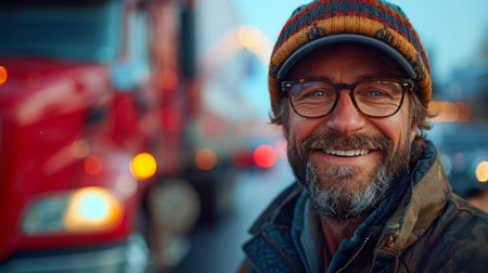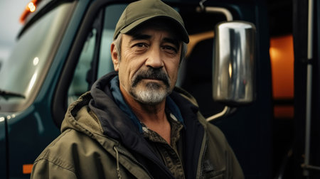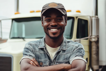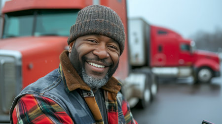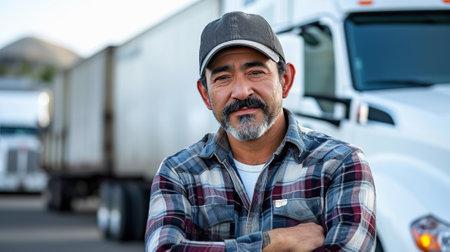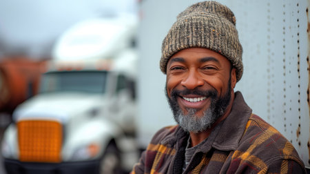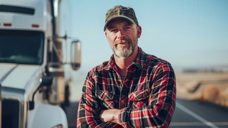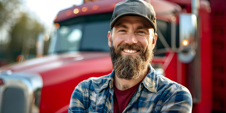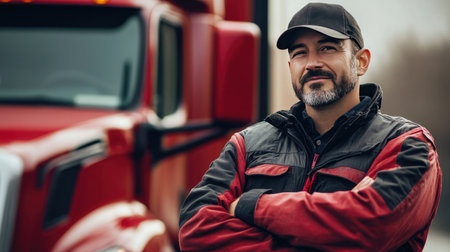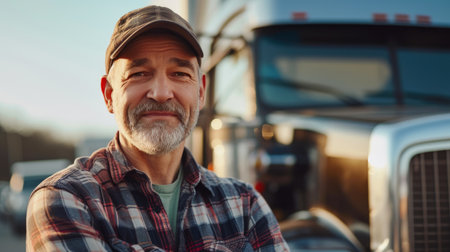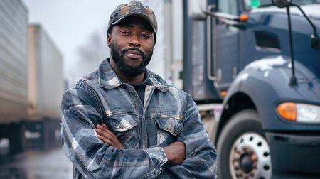 A dedicated truck driver standing proudly beside his cargo truck, embodying the backbone of the supply chain and efficient delivery.