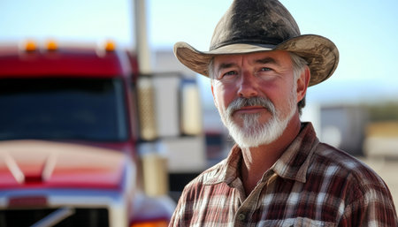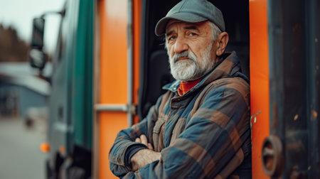 Confident Senior Trucker With His Rig A Portrait of Experience in the Transportation Industry