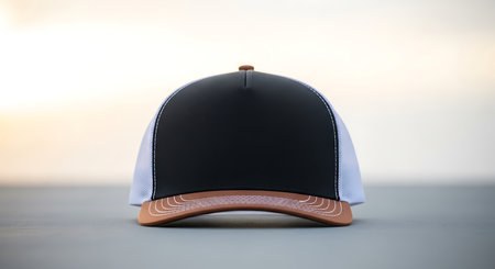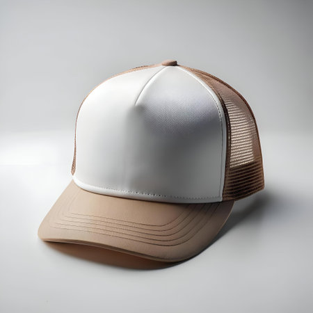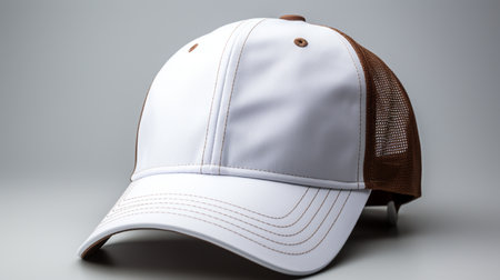A classic white and brown trucker hat. perfect for showcasing your brand logo or design. This high resolution image is ideal for mockups. apparel websites. and social media graphics.