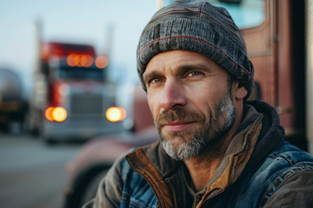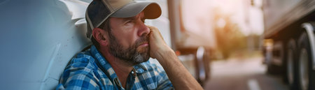 A weary and pensive truck driver taking a much needed break reflecting on the challenges and pressures of the transportation industry
