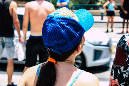 Tel Aviv Israel June 10, 2019 View of unknown Israeli kid having fun in the streets of Tel Aviv in the afternoon
