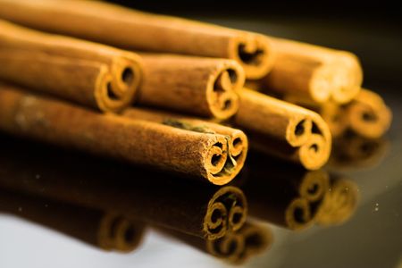 Cinnamon and nutmeg with reflection