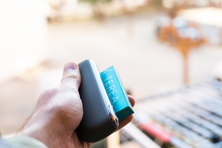Tarragona, Spain - January 26, 2023: Phillip Morris Internationals Marlboro IQOS, electronic cigarette. New pack terea.