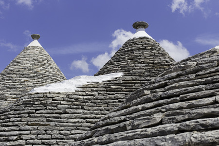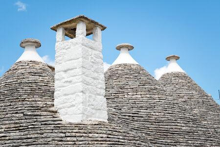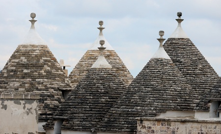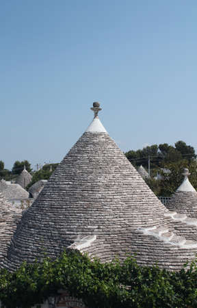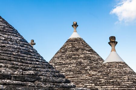 view of the typical conic roof of trullo buildings. Alberobello, Puglia. Italy