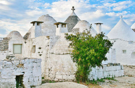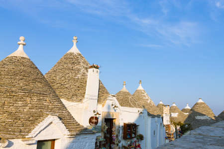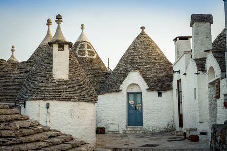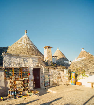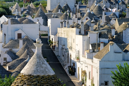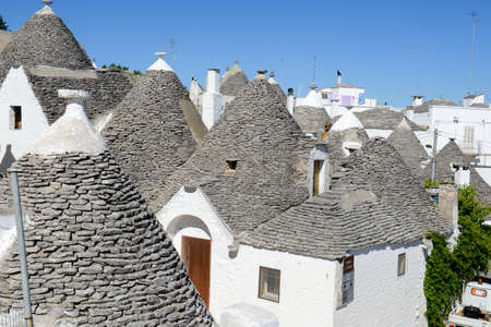 Alberobello Puglia, Italy - Monday 26 August 2019: Trulli of the historic city of Alberobello photographed in the late afternoon