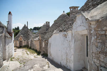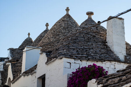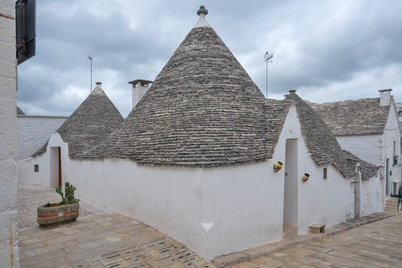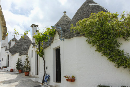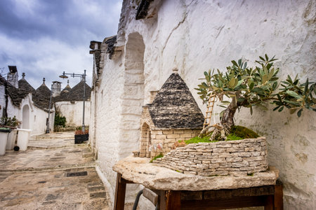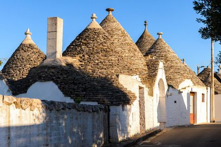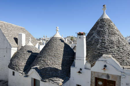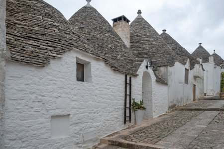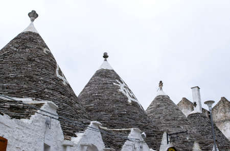 Typical trulli buildings with conical roofs in Alberobello, Apulia, Italy