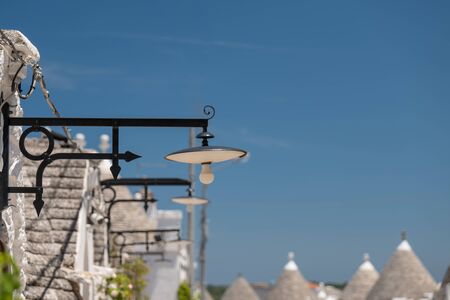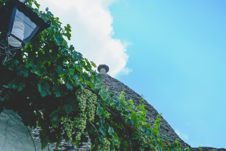 Lantern with bunches of ripening grapes in the Italian beauties of the village of Alberobello