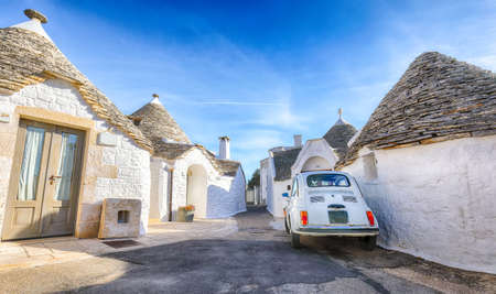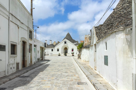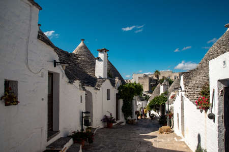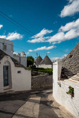 Alberobello, Italy - September 01 2020: The traditional Trulli houses and streets in Alberobello city, Puglia, Italy