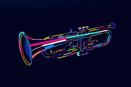 Abstract trumpet wind musical instrument from multicolored paints. Colored drawing