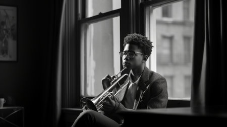 Captivating Jazz Rhapsody: Man Playing the Trumpet --ar 3:2