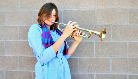 Trumpet player playing jazz musician. woman playing trumpet brass instrument