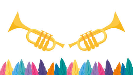 Mardi gras trumpets and feathers design, Party carnival decoration celebration festival holiday fun new orleans and traditional theme Vector illustration