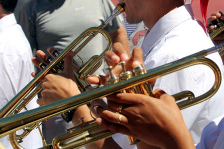 musician hands exploiting the trumpet