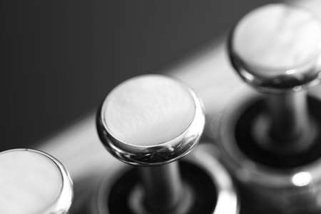 trumpet valves close up in black and white