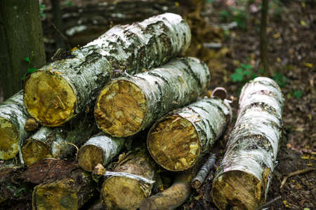 Birch logs in the summer forest