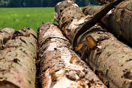 The logs of the tree.Forest logs.Forest production.Harvesting of wood.