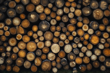 Generative AI : Aerial view of tree trunks in wood industry Manhay Belgium