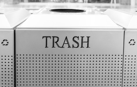 Trash bin garbage waste cabinet place outdoor around green plant with space for text for eco clean city recycle for nature concept