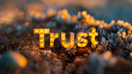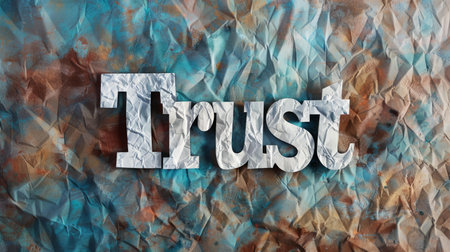 Close-up image showcasing the word 'TRUST' formed by individual letter tiles. This representation emphasizes the significance of trust in relationships and communication, evoking feelings of security and assurance.