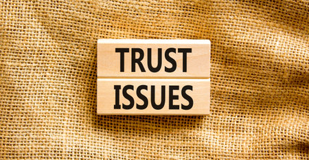 Trust issues symbol. Concept word Trust issues on beautiful wooden blocks. Beautiful canvas background. Business trust issues concept. Copy space.