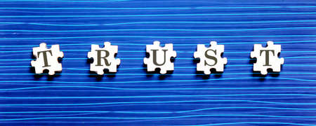 Wooden blocks with the word Trust. Trust relationships between business partners, friend and relatives.
