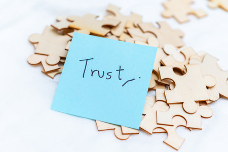 Building business trust puzzle pieces of partnership office space visual concept minimalist setting close-up view for effective collaboration