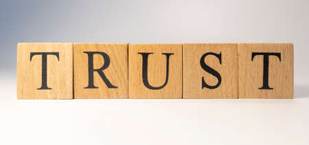 Wooden blocks with the word Trust. Trust relationships between business partners, friends, relatives.