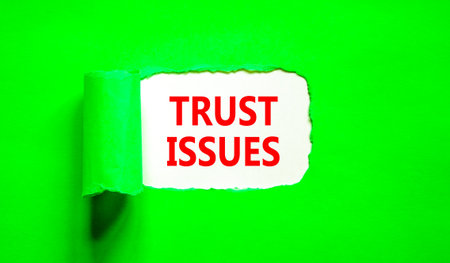 Trust issues symbol. Concept word Trust issues on beautiful white paper. Beautiful green paper background. Business trust issues concept. Copy space.