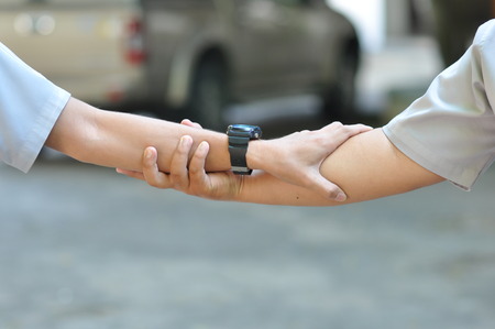Friends shake hand union friendship community