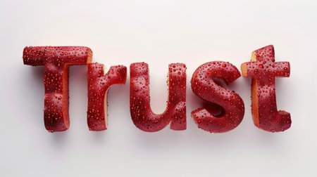 Close-up image showcasing the word 'TRUST' formed by individual letter tiles. This representation emphasizes the significance of trust in relationships and communication, evoking feelings of security and assurance.