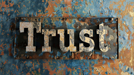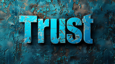Colorful Chipped Paint Text Trust on Blue Grunge Background